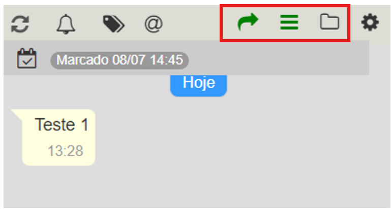 Quando o paciente não está integrado ao sistema, é necessário clicar na engrenagem que fica na barra superior do chat para realizar a integração.