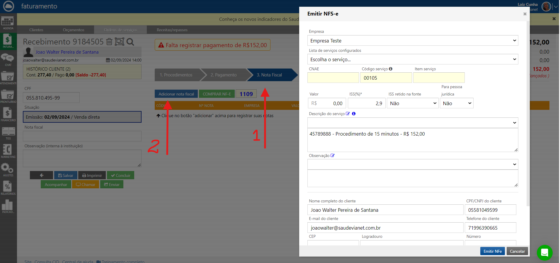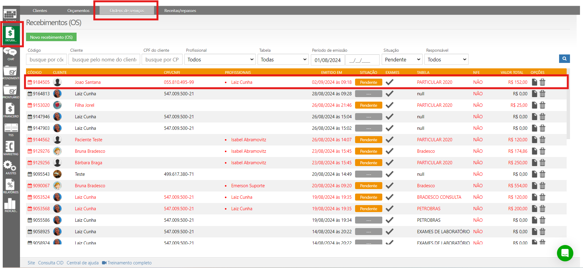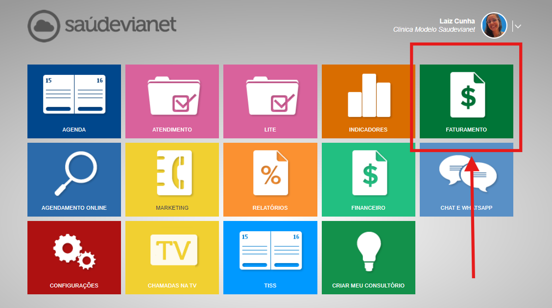 Uma das formas de acessar as Notas Fiscais Eletrônicas de um procedimento é clicando na aba 'Faturamento' do sistema.