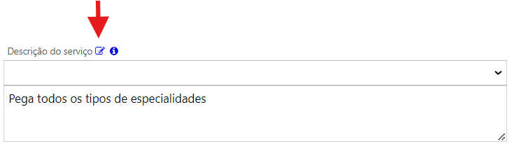 Após definir a empresa e selecionar o serviço para o qual será emitida a Nota Fiscal, é possível configurar dinamicamente a descrição do serviço através de parâmetros. Para isso clique no botão de editar conforme figura abaixo: