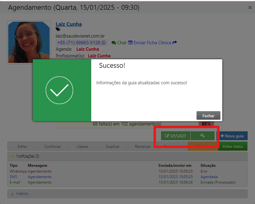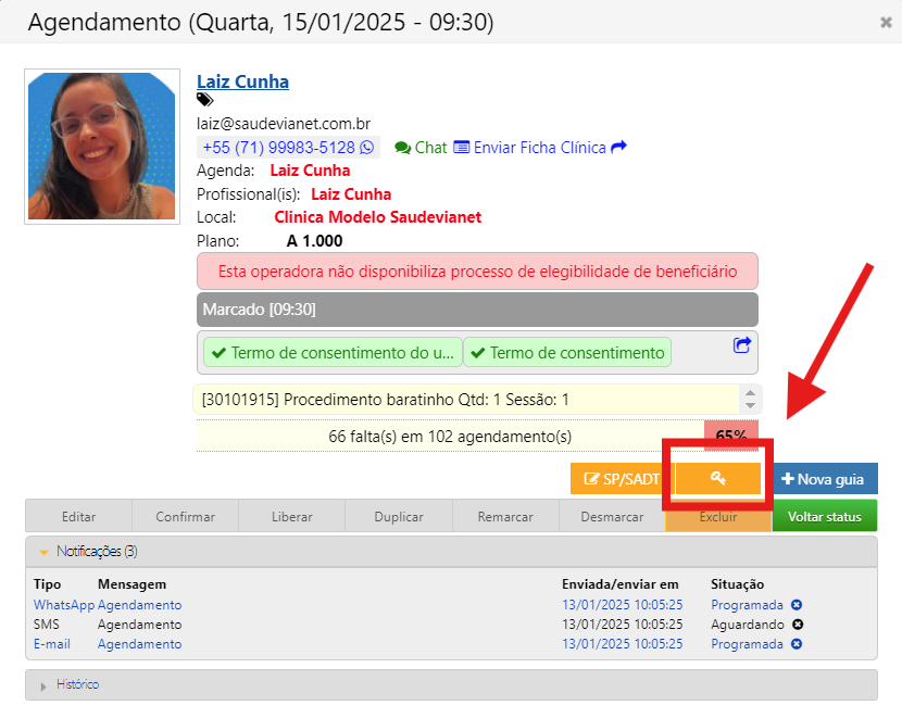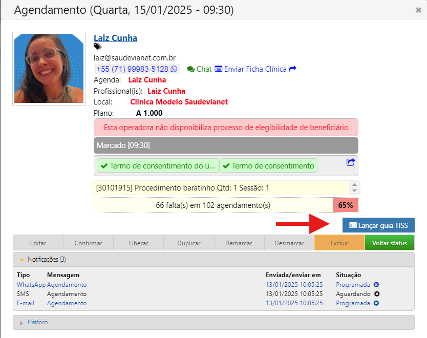 Após agendar, gere a guia TISS correspondente ao procedimento.