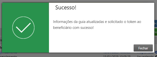 Após inserir o token corretamente, o ícone da chave deve mudar para a cor verde, indicando que o token foi inserido e o agendamento está confirmado.