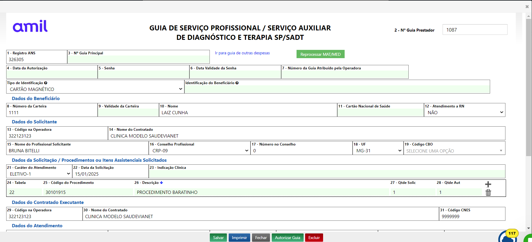 Quando a instituição realiza o pedido de autorização do procedimento, a operadora gera uma senha e envia para a instituição. Essa é a senha a ser inserida pela instituição no campo “ Senha de autorização”.