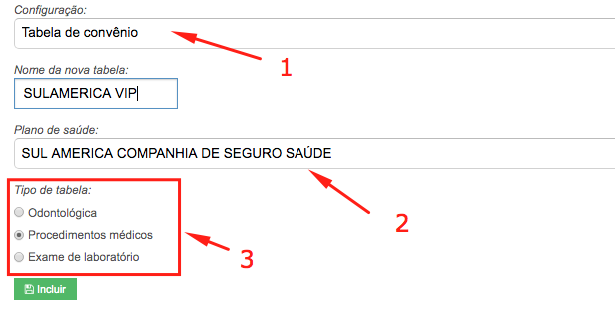 O tipo de tabela (3) é muito importante pois fará difença na forma de utilização. Uma tabela tipo Exame de laborátorio, exibirá atributos especificos para esse tipo de serviço. Assim como a tabela de odonto apresenta itens que não são visiveis na tabela médica.