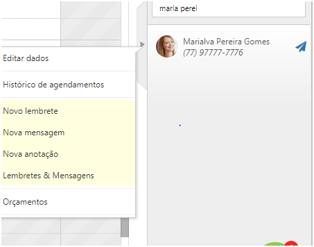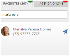 5- Para ter acesso ao paciente diretamente basta ir à fonte pesquisar e colocar o nome, telefone ou número do prontuário na barra buscar e assim você terá acesso aos dados, históricos, orçamentos, lembretes, mensagens.