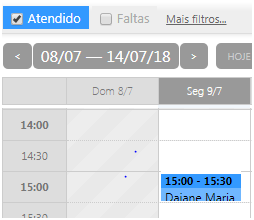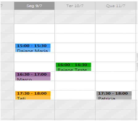 Vermelho: Em caso de falta, desmarcação ou remarcação o sistema muda automaticamente.