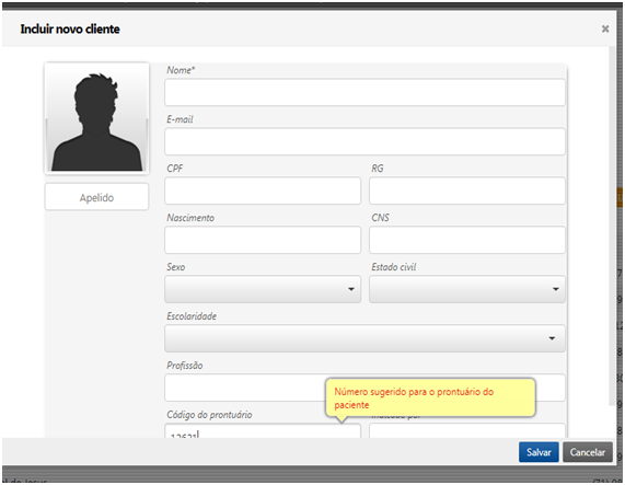 Este app pode ser usado de modo independente da agenda. Assim, é possível cadastrar os pacientes diretamente.