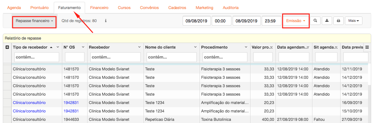 Vá para o menu RELATÓRIOS > FATURAMENTO > REPASSE FINANCEIRO.