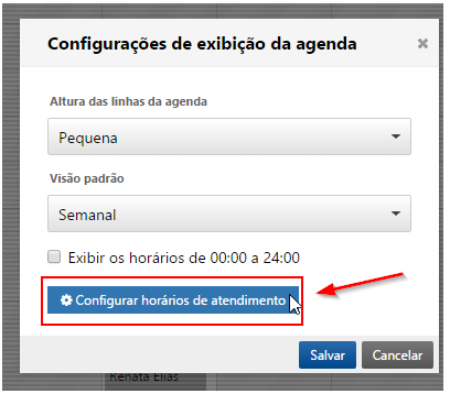 4. Selecione o tempo de consulta e intervalo entre linhas da agenda.