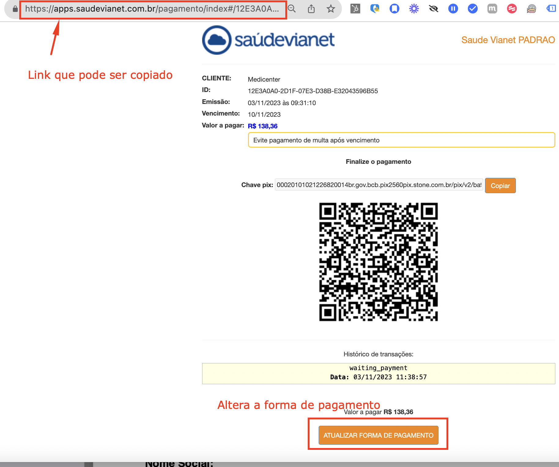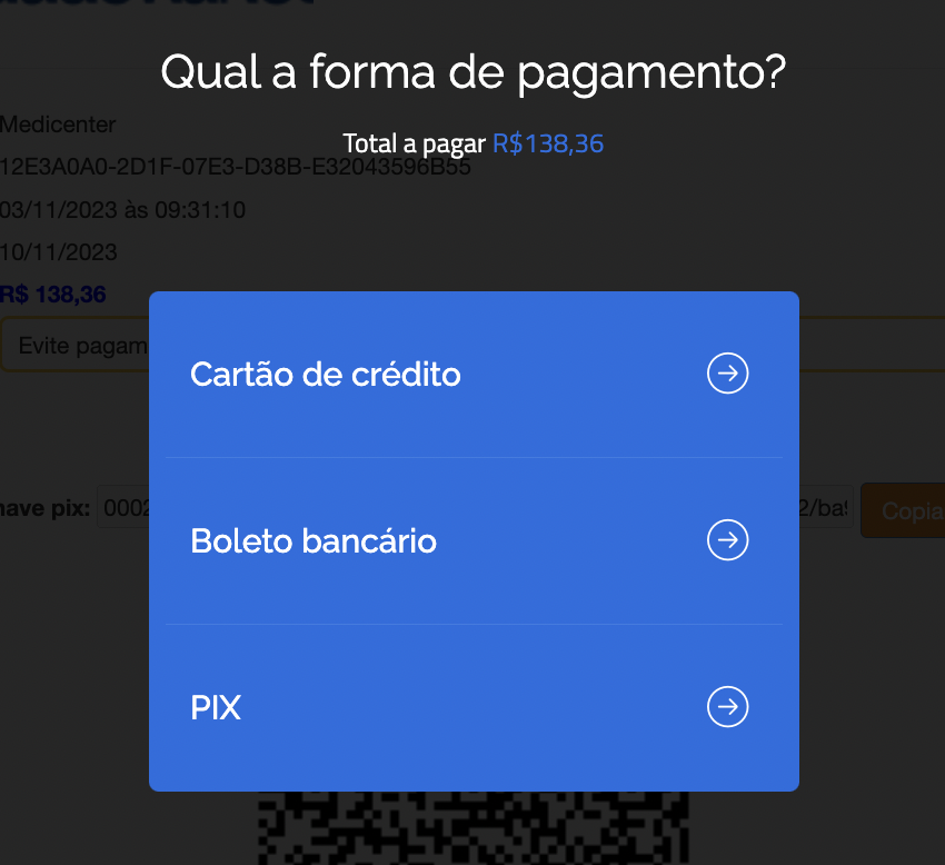 O caso mais prático talvez seja em relação aos atendimentos online. É enviado o link e o paciente realiza o pagamento antes da consulta. Outra forma comum, é diretamente na página de agendamento online, onde para confirmar o pagamento, o paciente necessita realizar o pagamento antecipadamente.
