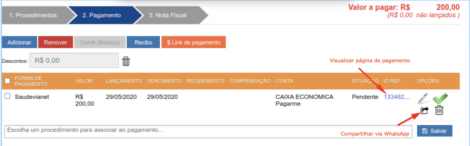 2. Pode clicar no campo ID REF e ir para página de pagamento .
