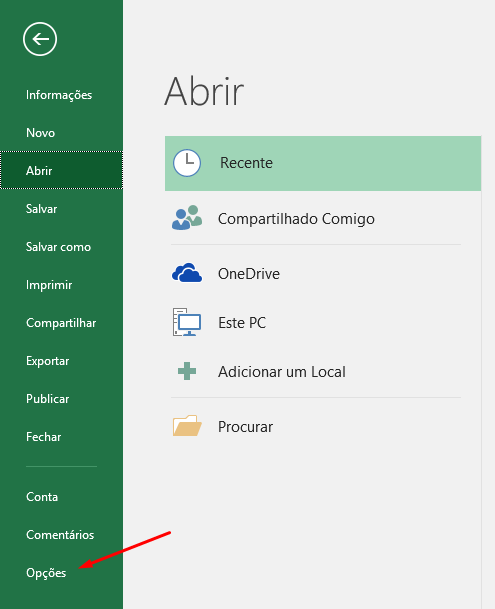 3. Clique no Menu Arquivo (Botão Office), em seguida no menu Opções do Excel, depois em Suplementos. Na opção Gerenciar defina Suplementos do Excel. Veja nas imagens abaixo: