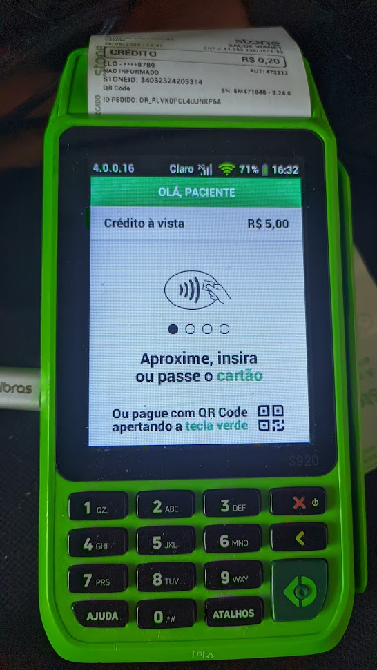 Como mágica, o seu pedido aparecerá na maquininha. O seu cliente irá realizar o pagamento. Após isto a baixa e conciliação será realizada automaticamente.