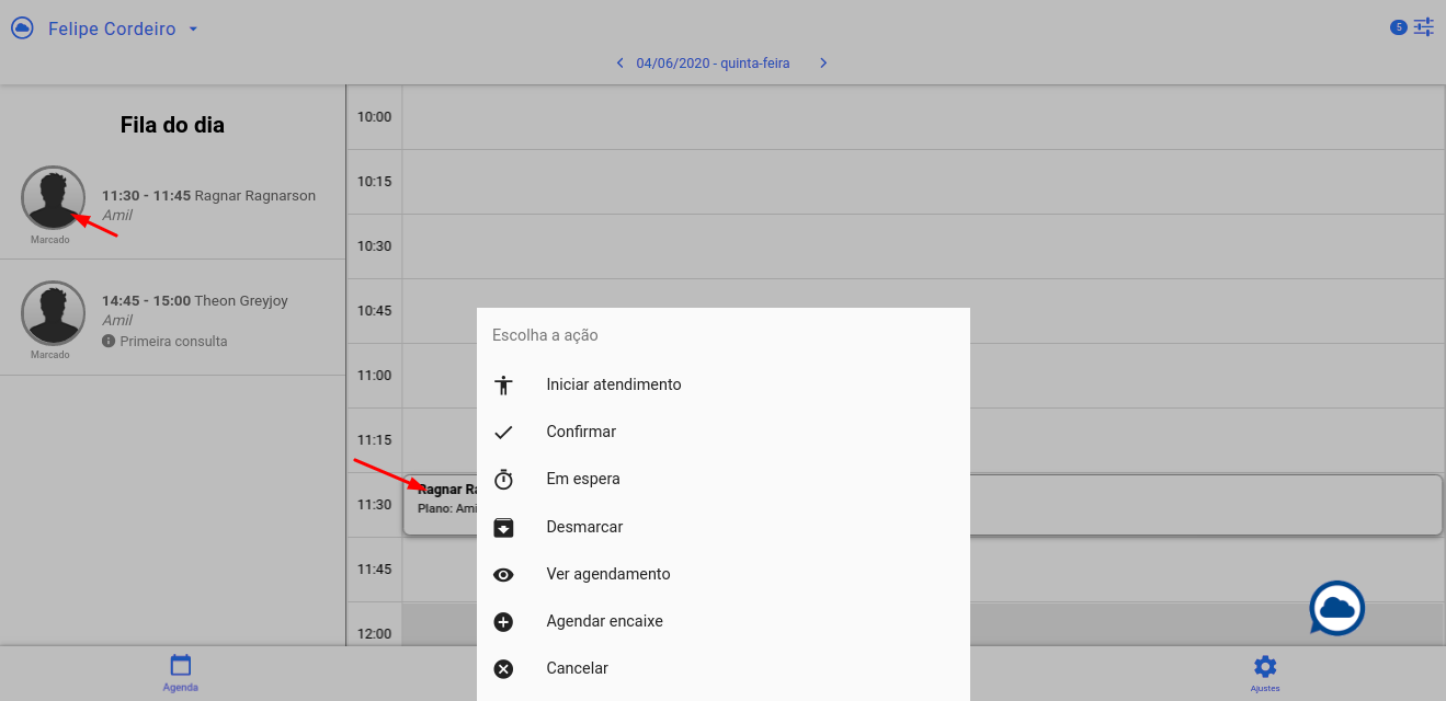 Ao clicar no agendamento, seja pelo horário ou pela fila irá aparecer as opções de atualização de dados para o agendamento.