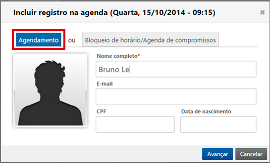 Na opção de "Agendamento", digite o nome do paciente. Nossa busca inteligente reconhece o SOM das palavras. Assim, a busca de um paciente por Raphael ou Rafael e Tereza ou Teresa, retornarão o mesmo resultado. Depois, clique em "Avançar".