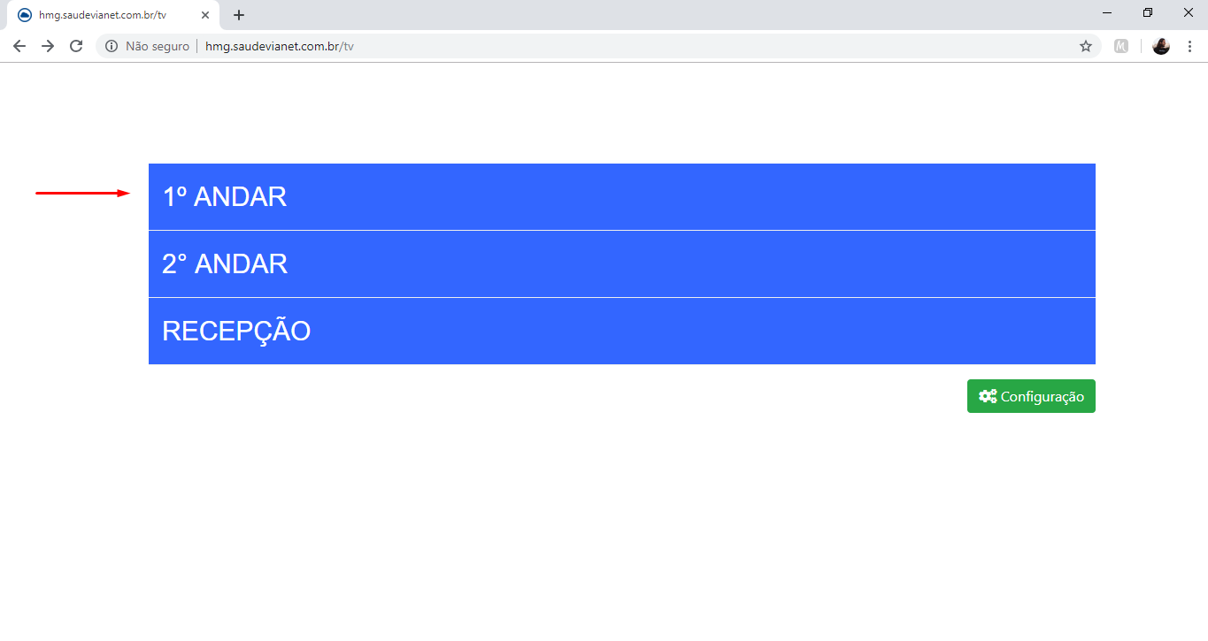 1 - No PC conectado à TV, acesse o painel de configuração da TV e selecione o "painel de atendimento" que será transmitido naquela unidade.