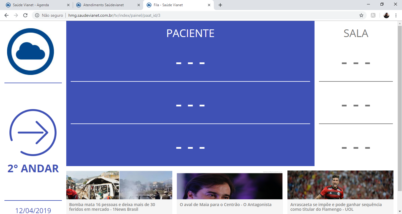 2 - O sistema exibirá a lista de chamadas do momento e as notícias da internet que estão nos principais portais da internet.