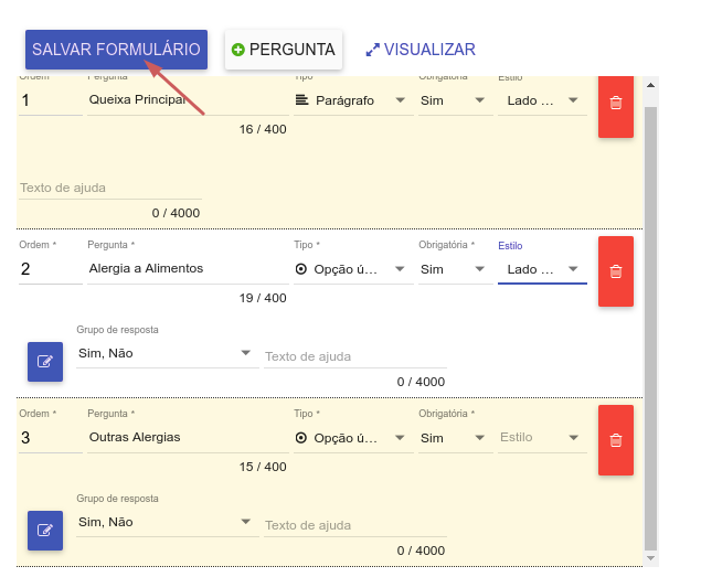 4 - Pode adicionar quantas perguntas quiser seguindo o passo 3.