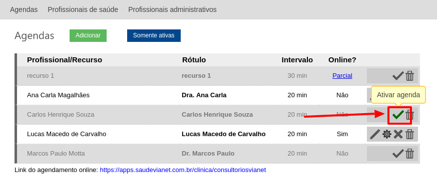 4) Clique na agenda que você deseja reativar.