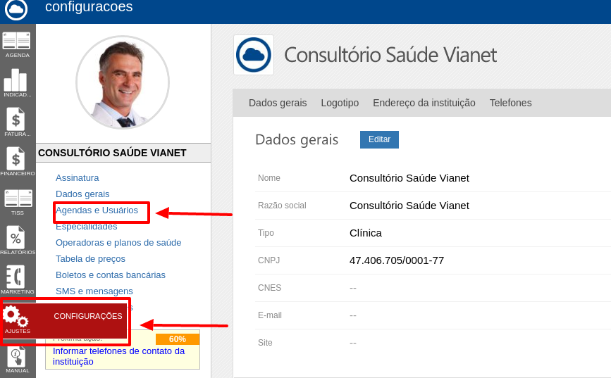 2) Clique em "Agendas e Usuários"