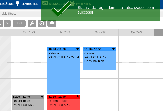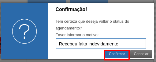 3) Uma mensagem de confirmação irá aparecer e o agendamento volta para o Status de "Marcado".