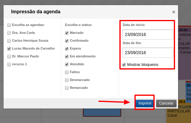 2) Selecione os profissionais que desejar, defina o período a ser impresso e pronto, é só clicar em "Imprimir".