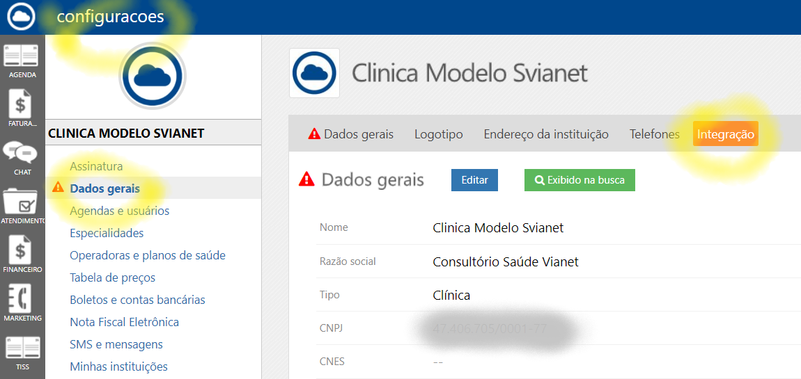 1. Acesse nosso módulo de configurações, vá no menu "Dados gerais" - "Integração".