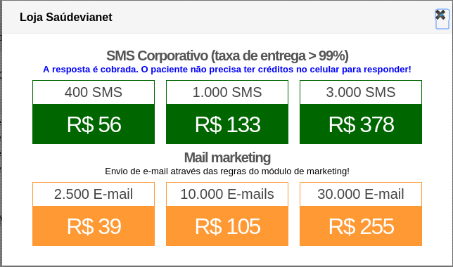 Sua clínica/consultório está em pleno funcionamento, realizando diversos agendamentos por dia. De repente seus SMS’s acabam. Sua comunicação com o paciente é essencial, caso contrário, o uso da sua agenda ficará comprometido.