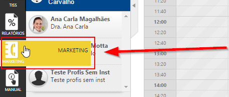 Para acessar o Aplicativo, clique na opção "Marketing" da barra de menus de Aplicativos, na esquerda da sua agenda.
