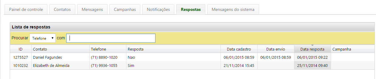 Em “Respostas” você acompanha cada uma das respostas das mensagens enviadas aos seus pacientes.