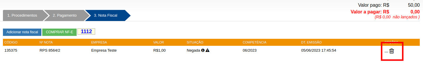 3º passo: Dentro dessa aba, você encontrará o ícone representado por uma "lixeira", basta clicar no ícone para inicar o processo da exclusão.