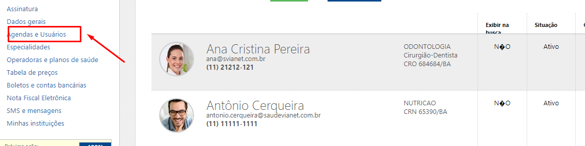 1. Acesse o menu Ajustes > Agendas e Usuários.