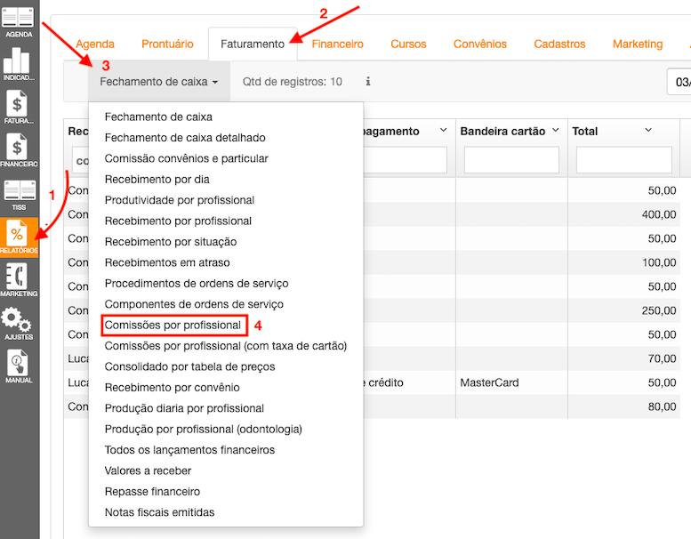Gerenciar as comissões dos funcionários com o Saúde Vianet é muito simples.