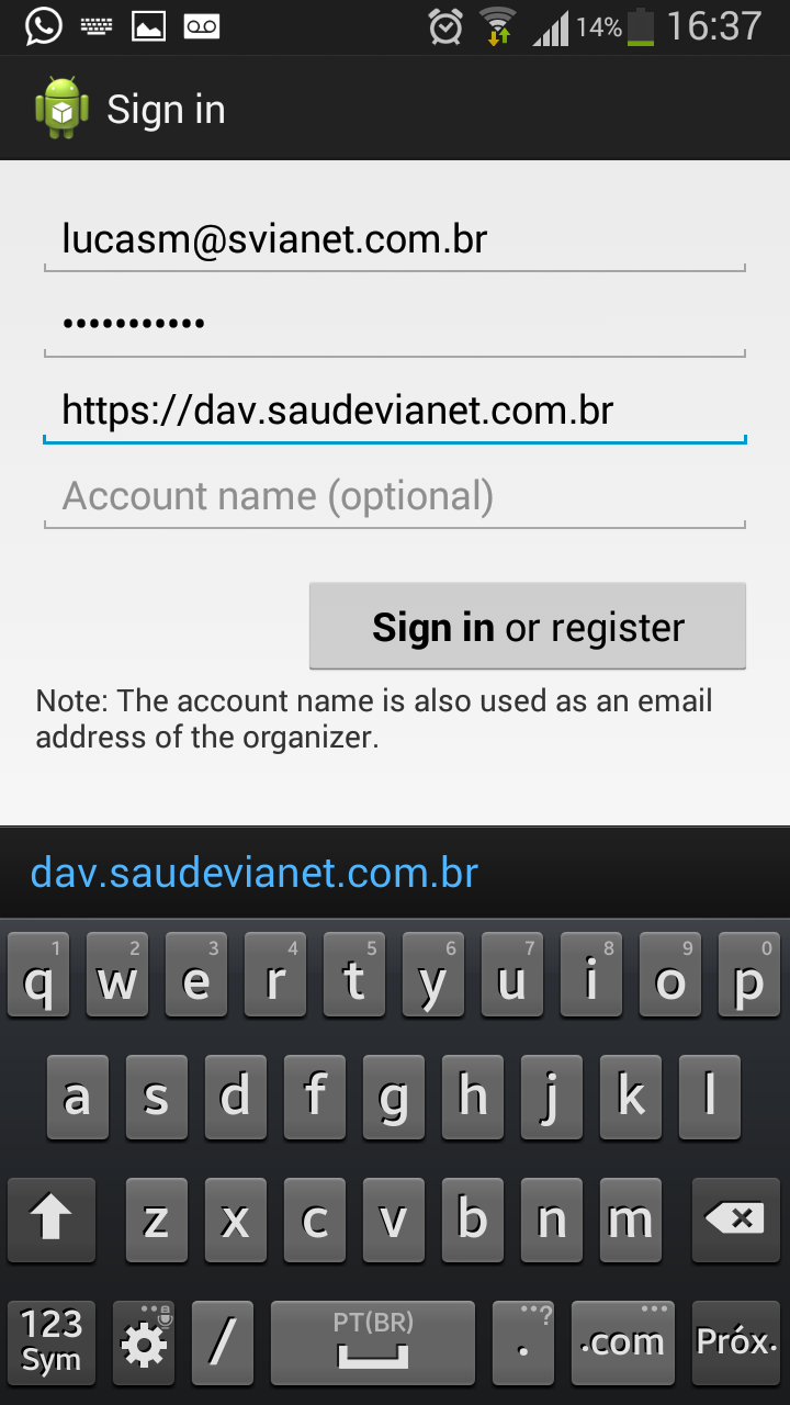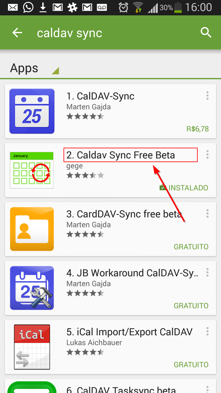1. Baixar o APP Caldav Sync (que é gratuito) na Play Store;