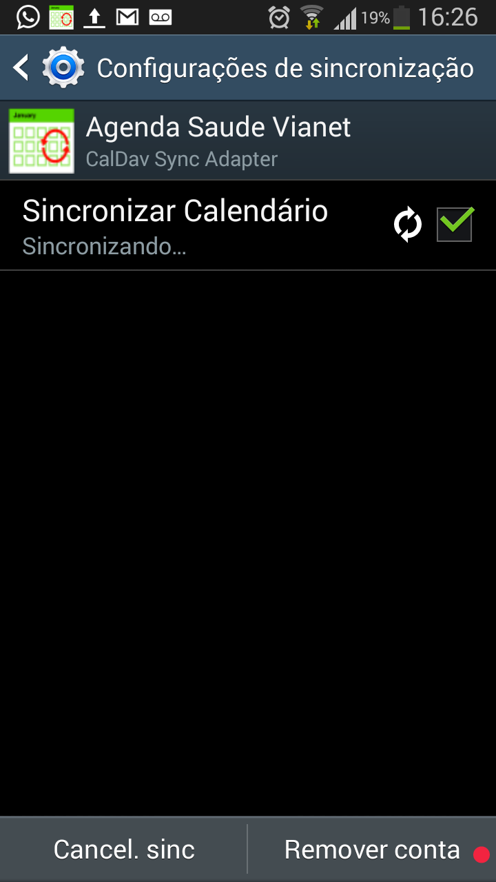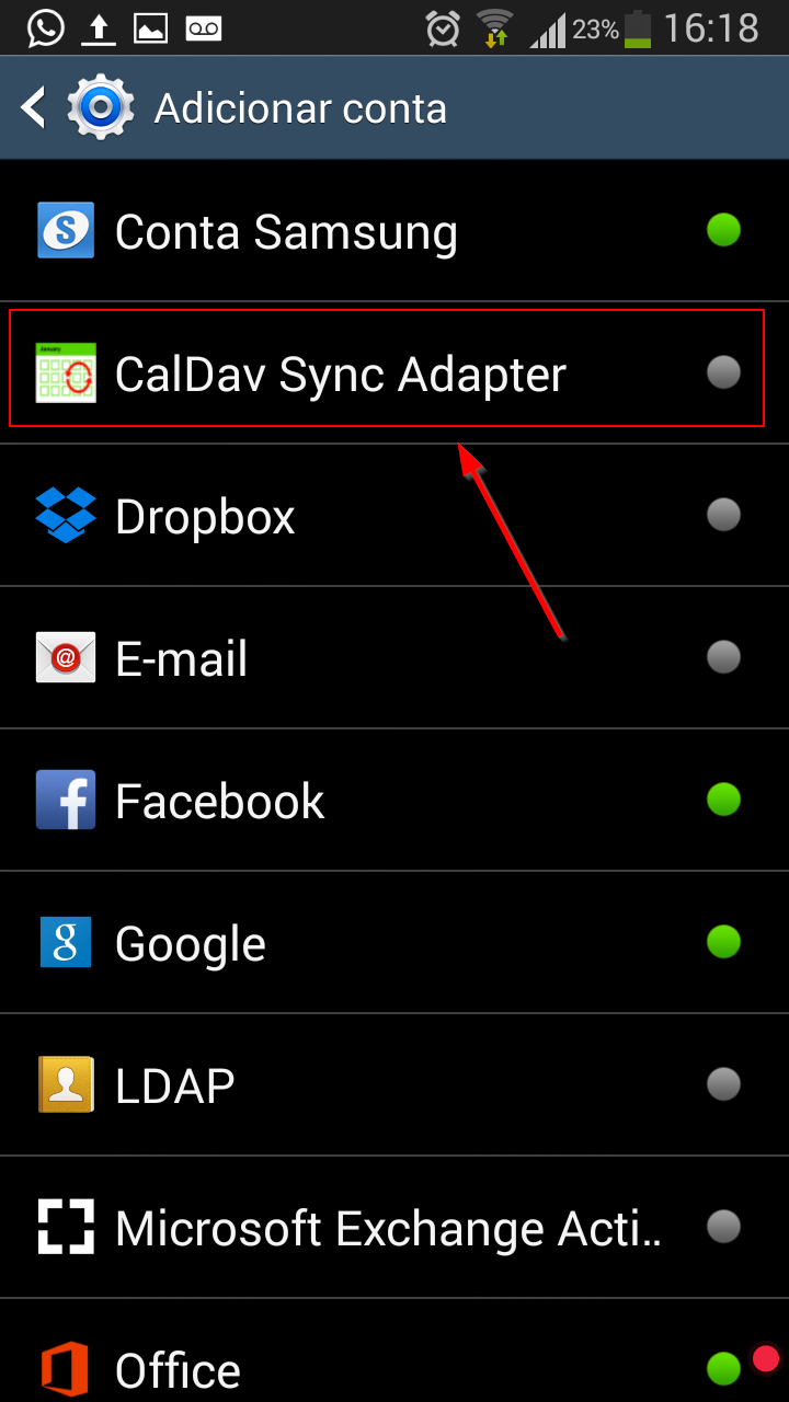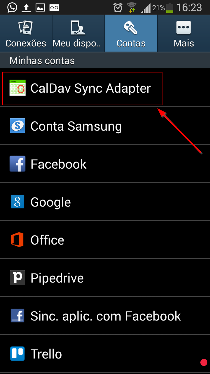 6. Clicar no ícone do Caldav, na lista de contas, e selecioná-lo para sincronizar;