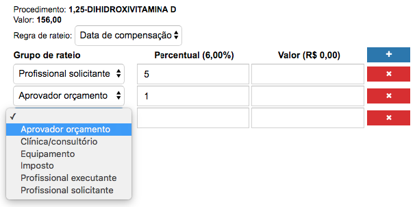 Na tabela de preços, agora é possivel configurar o percentual ou valor fixo de repasse de cada procedimento para um grupo de usuário do sistema.