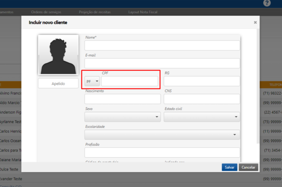 Agora sua clínica pode efetuar um serviço tanto para pessoa física quando pessoa jurídica, cadastrando o atendimento mediante um numero de CPF ou CNPJ.