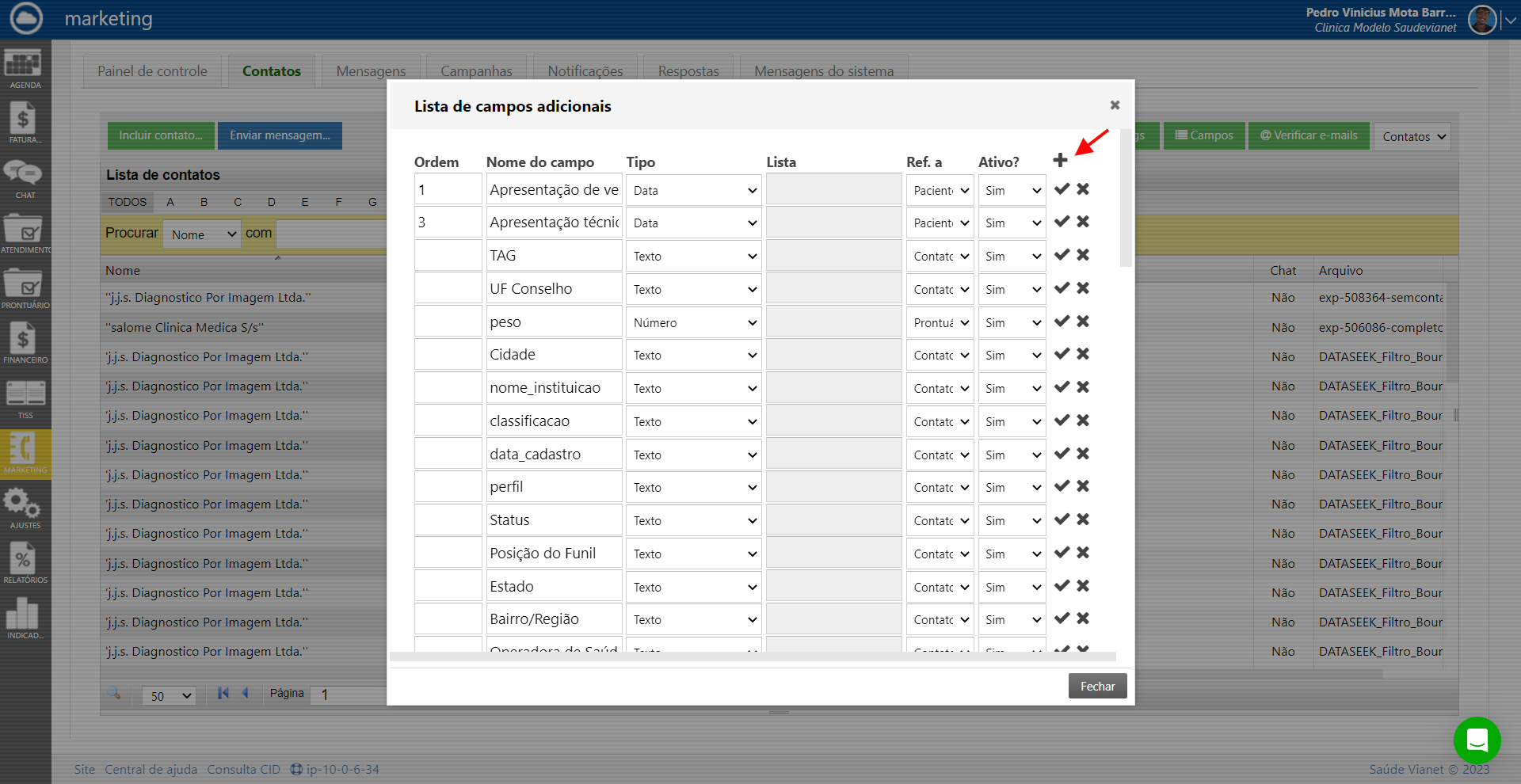 Siga os seguintes passos para incluir um novo campo no cadastro do paciente: