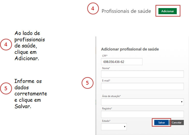 Como incluir um profissional de saúde ou auxiliar de saúde?