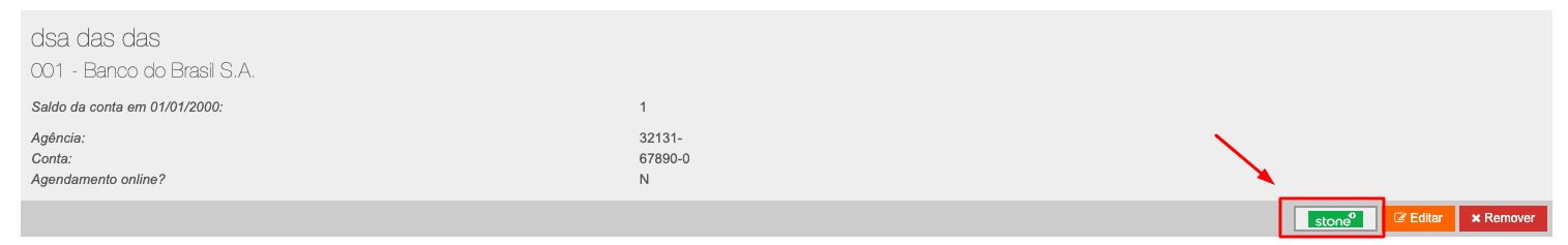 Após criar a conta financeira, você deverá associar a conta a stone, para isso basta clicar sobre o ícone verde com letras brancas:
