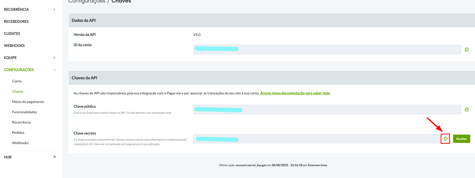 Depois clique para copiar a sua chave de acesso: