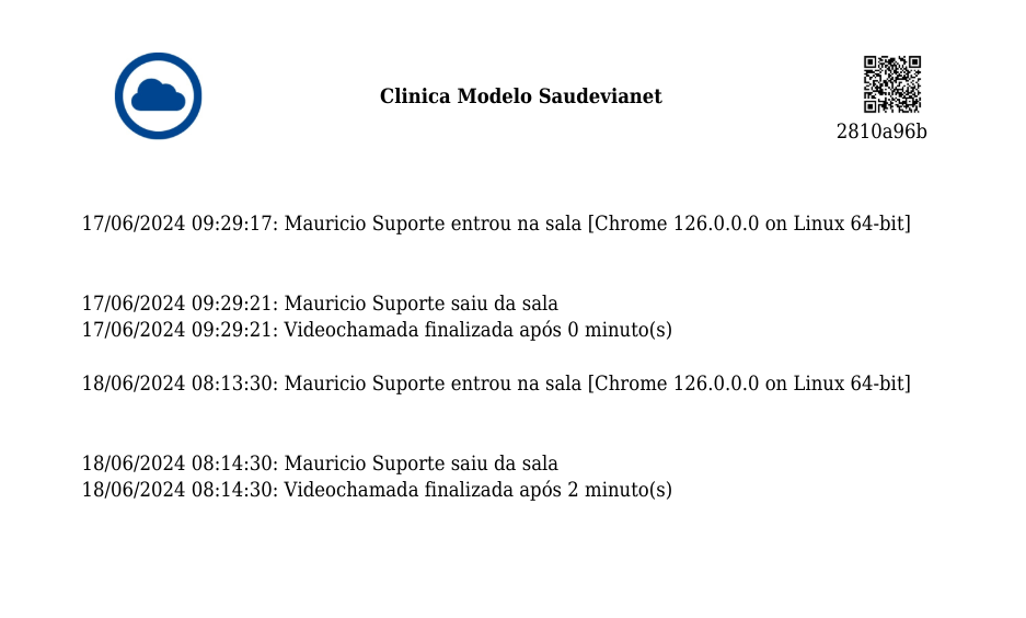 Todas as informações de entrada e saída da sala e mensagens do chat, salvas no prontuario do paciente: