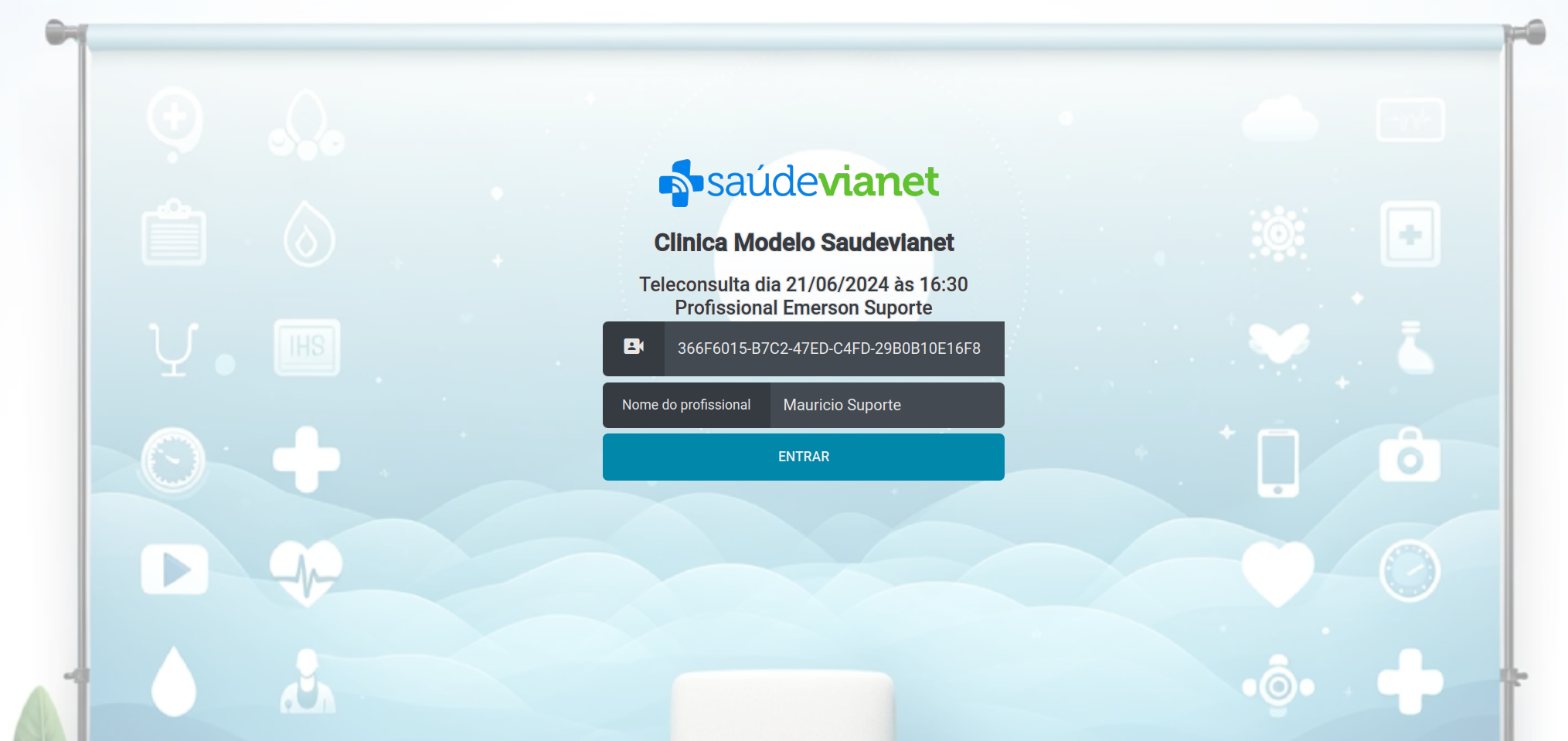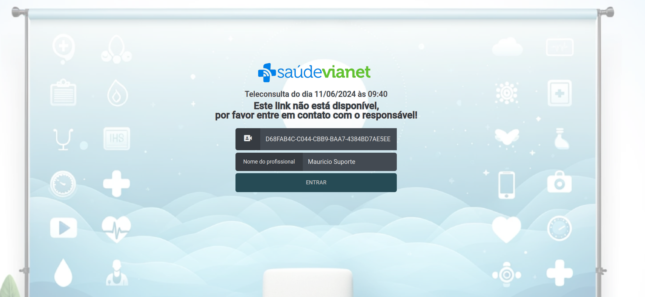 Link só fica disponível no dia da consulta. Caso contrário não é permitido a entrada na sala: