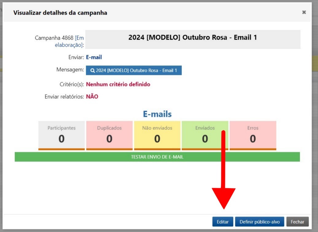Ao retornar à página de Campanhas, você verá que uma nova campanha foi criada com base no modelo escolhido. Clique nessa campanha para editá-la.