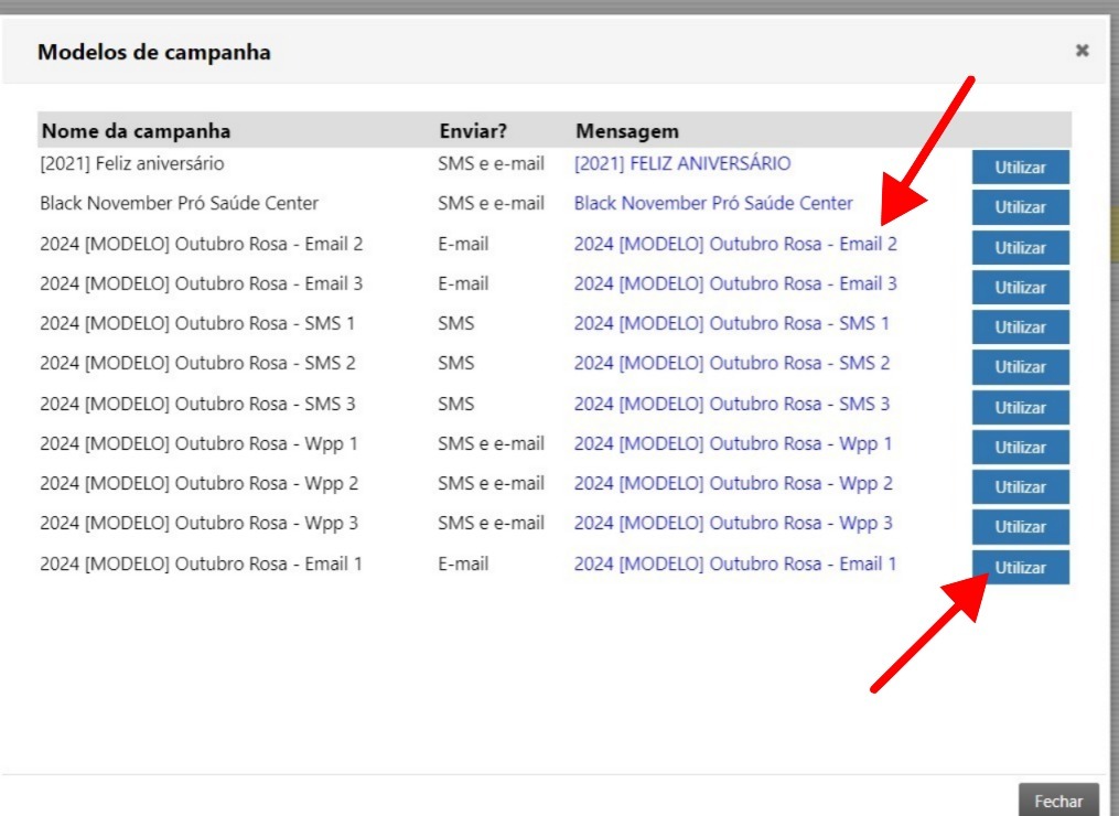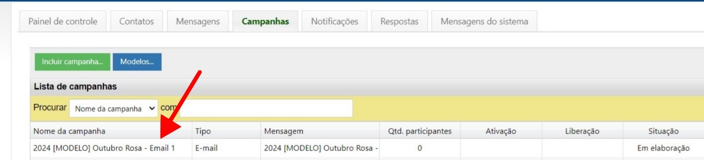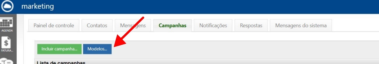 Na tela de campanhas, selecione a aba Modelos.